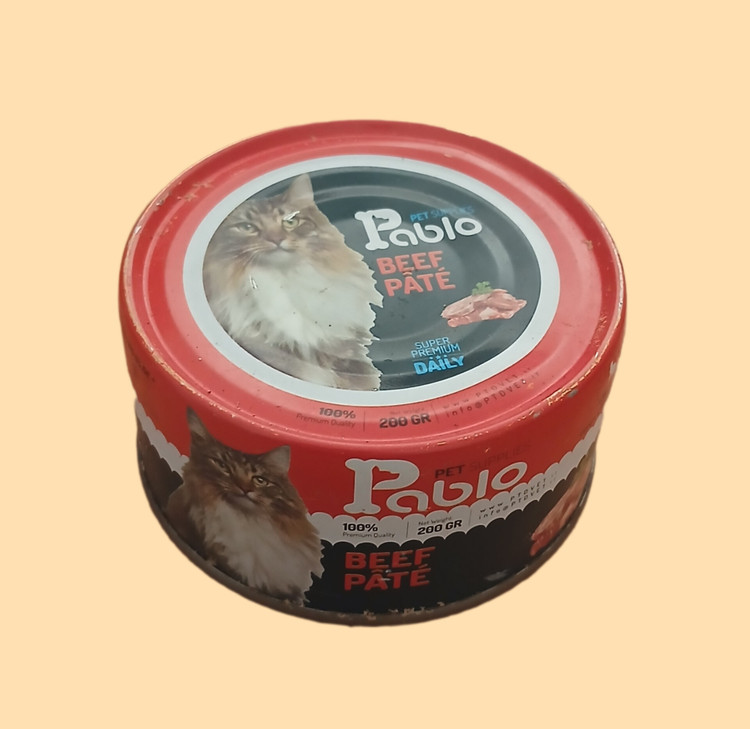 کنسرو پته گربه با کیفیت سوپر پریمیوم پابلو از برند مجموعه تولیدی شرکت لوکا که در زمینه تهیه انواع غذاهای خشک پت و اکسسوری ها فعالیت می کند تولید شده است.